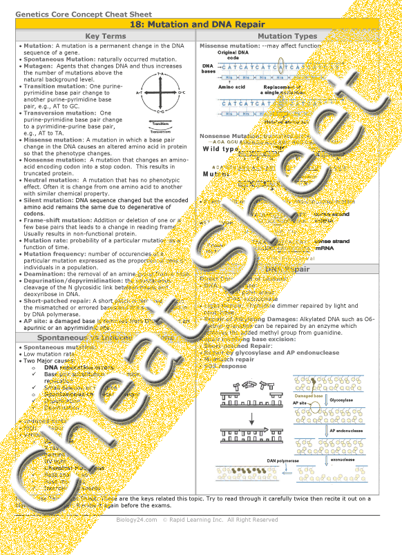DNA mutation includes several types according to its consequence: base pair substitution (transversion or transition); missense mutation, nonsense mutation, neutral mutation, silent mutation and frame-shift mutation.